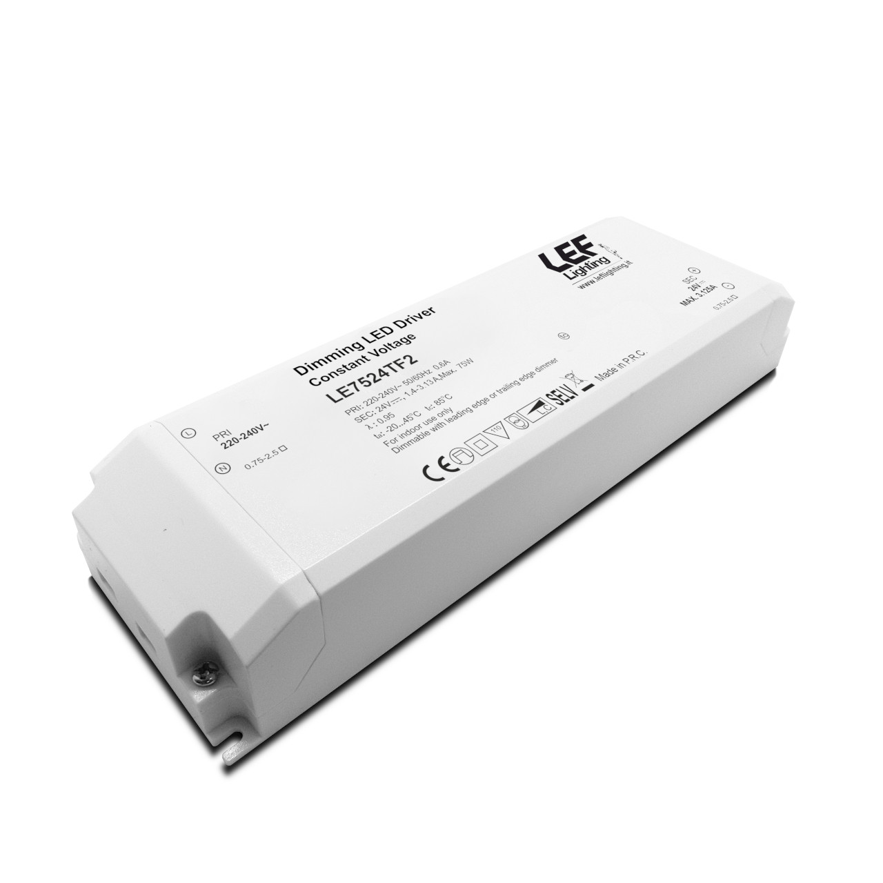 LE7524TF2ALIMENTATORE LED TENSIONE COSTANTE 24Vdc 75W IP20 Dimmerabile a Taglio di Fase