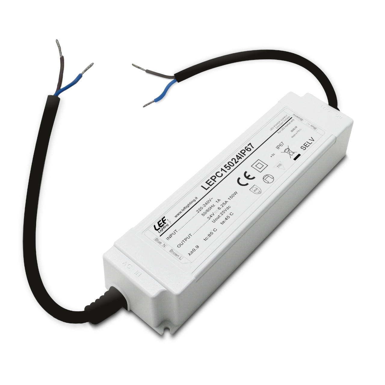 LEPC15024IP67Alimentatore Driver LED 24Vdc 150W 6250mA Tensione Costante IP67 ON/OFF